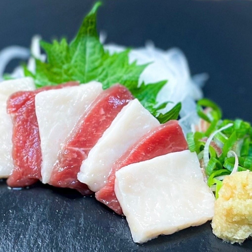 3~5㎜ほどにスライスし、赤身や上赤身と合わせて盛り付けてください。